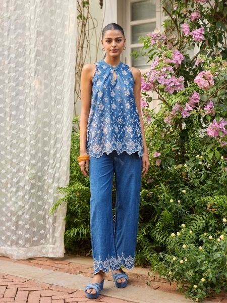 I wore this denim look for brunch and styled it again for a festive dinner—so versatile and so stunning. The embroidery is a show-stealer.