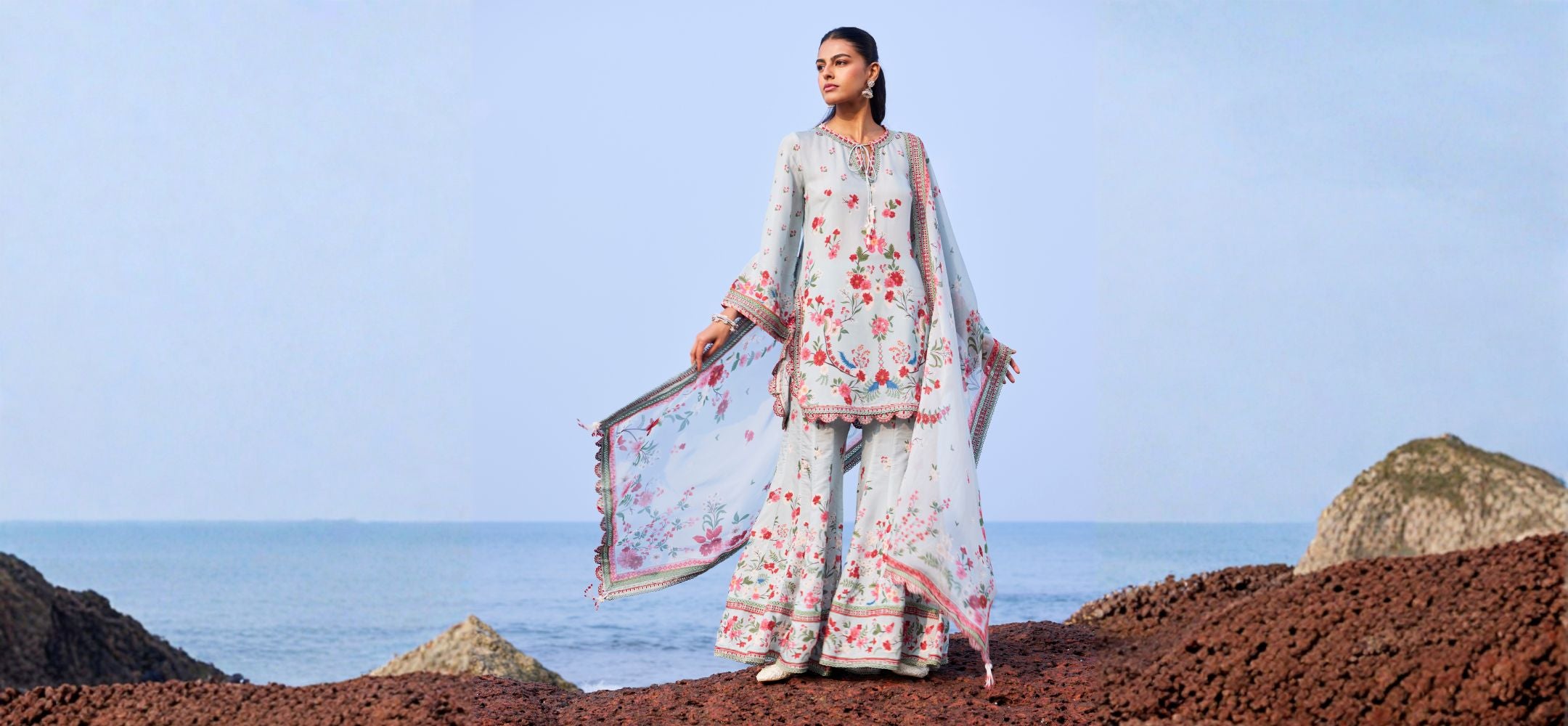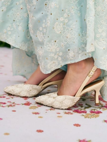 The colour feels so understated yet festive. The embroidery adds such a soft, elegant charm to the whole look. Loved how graceful and light this outfit feels. It’s perfect for intimate celebrations and special days