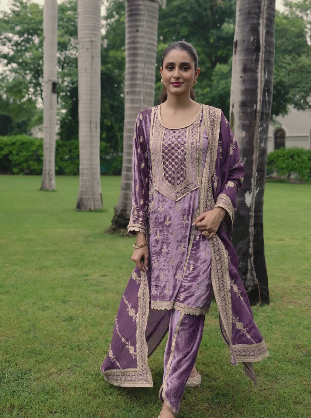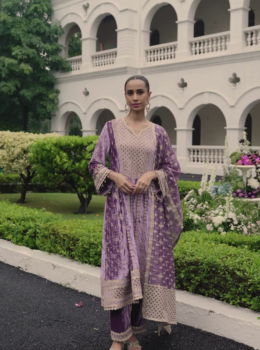 Shayari Velvet Lavender Kurta with Dhoti Pant Set