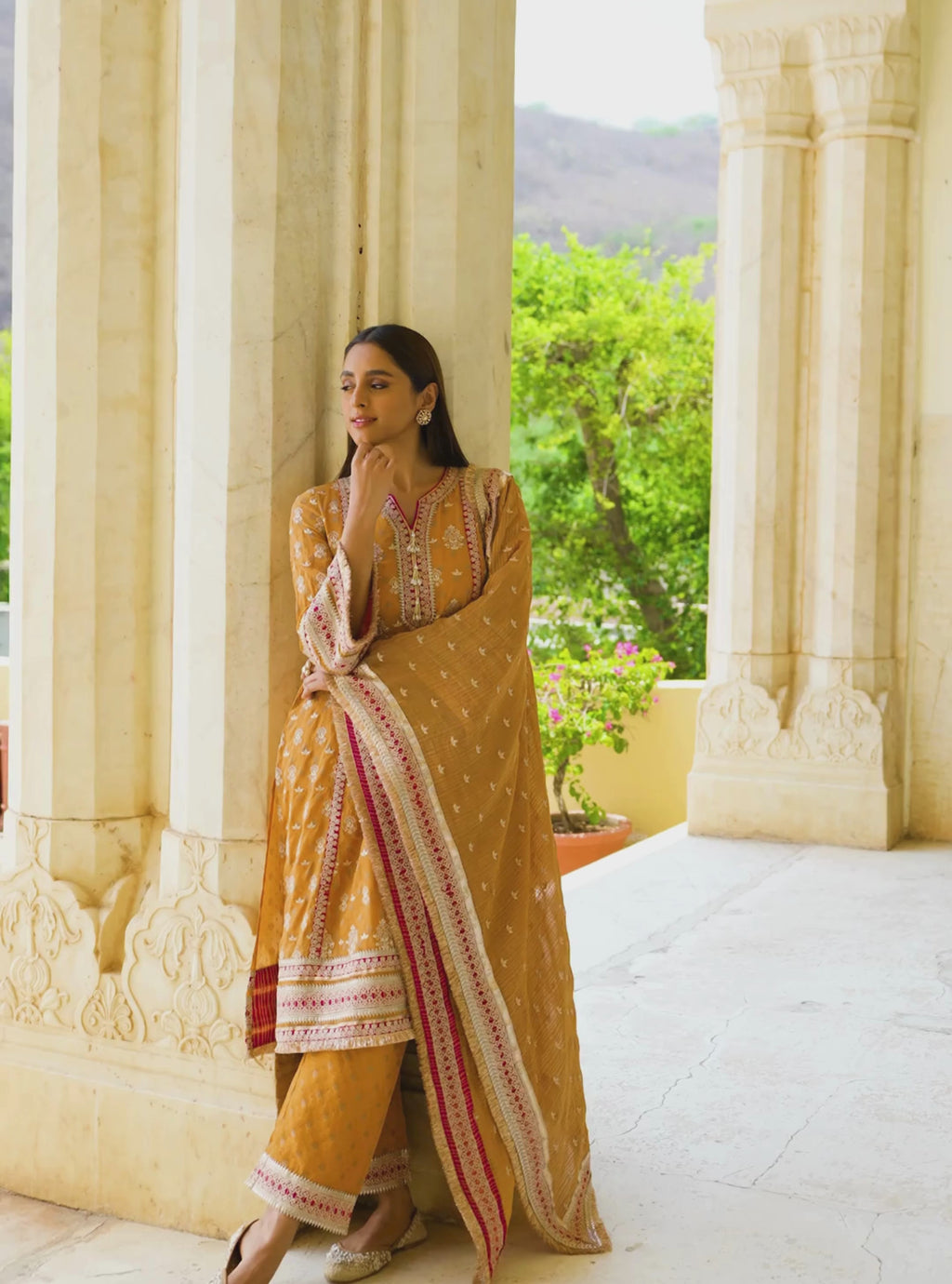 Aryela Banarasi Mustard Kurta Set