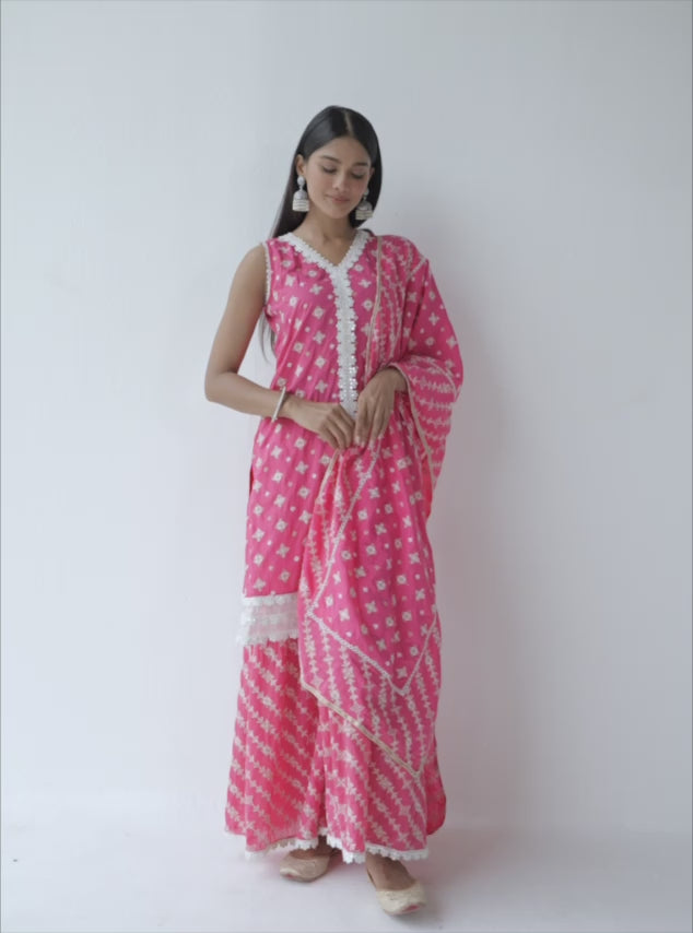 Mulmul Cotton Serenity Fuchsia Kurta With Serenity Fuchsia Sharara