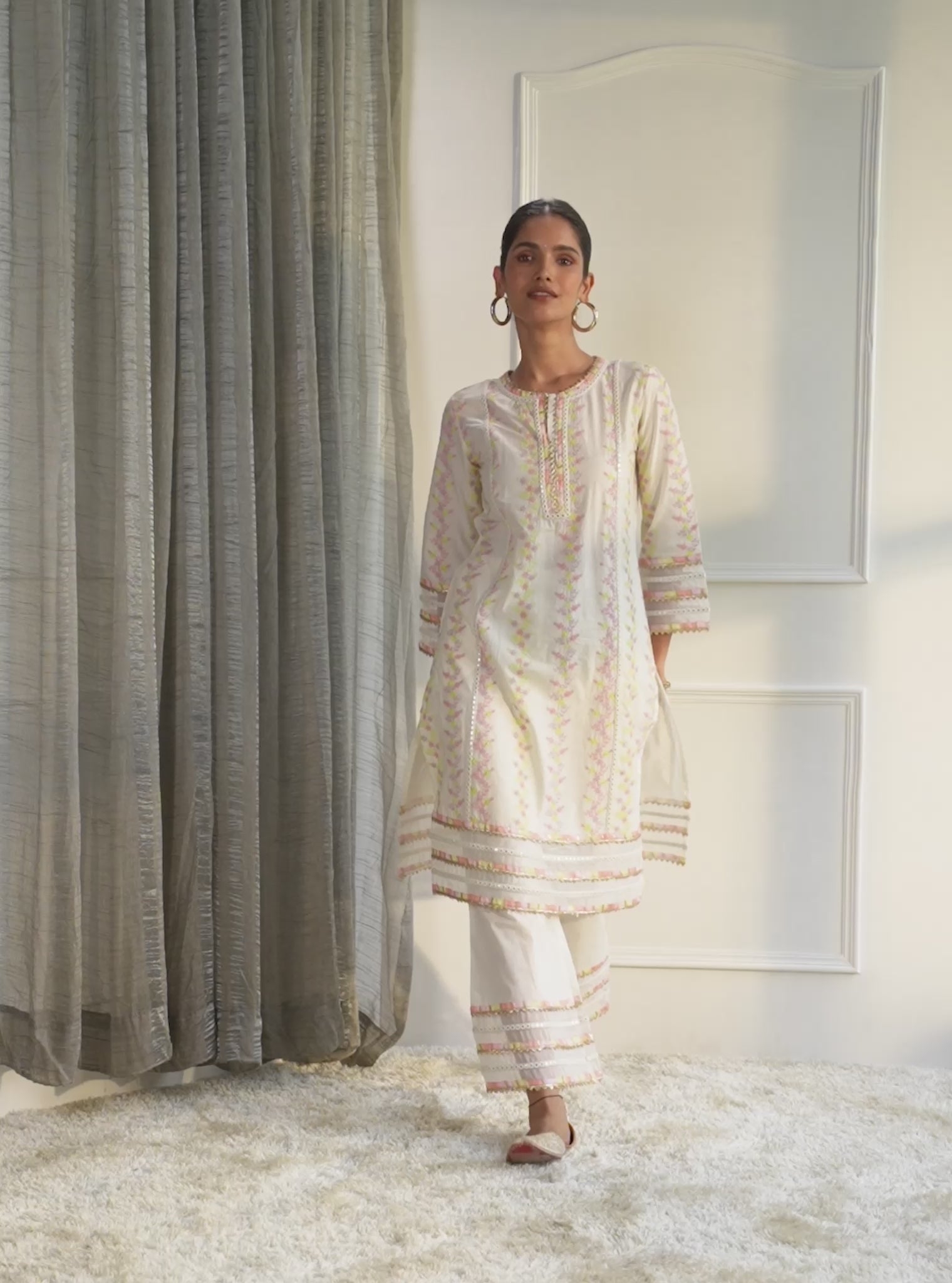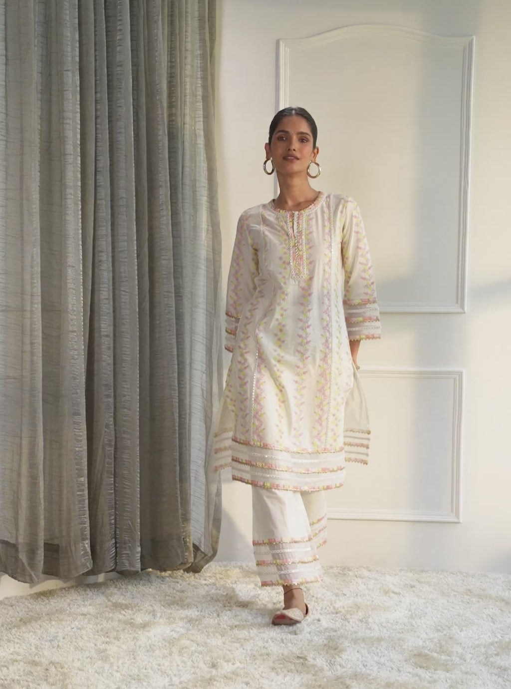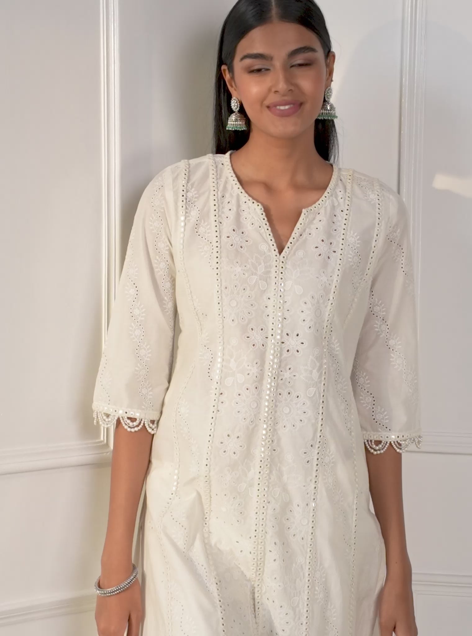 Mulmul Cotton Asteria Off White Kurta With Asteria Off White Palazzo