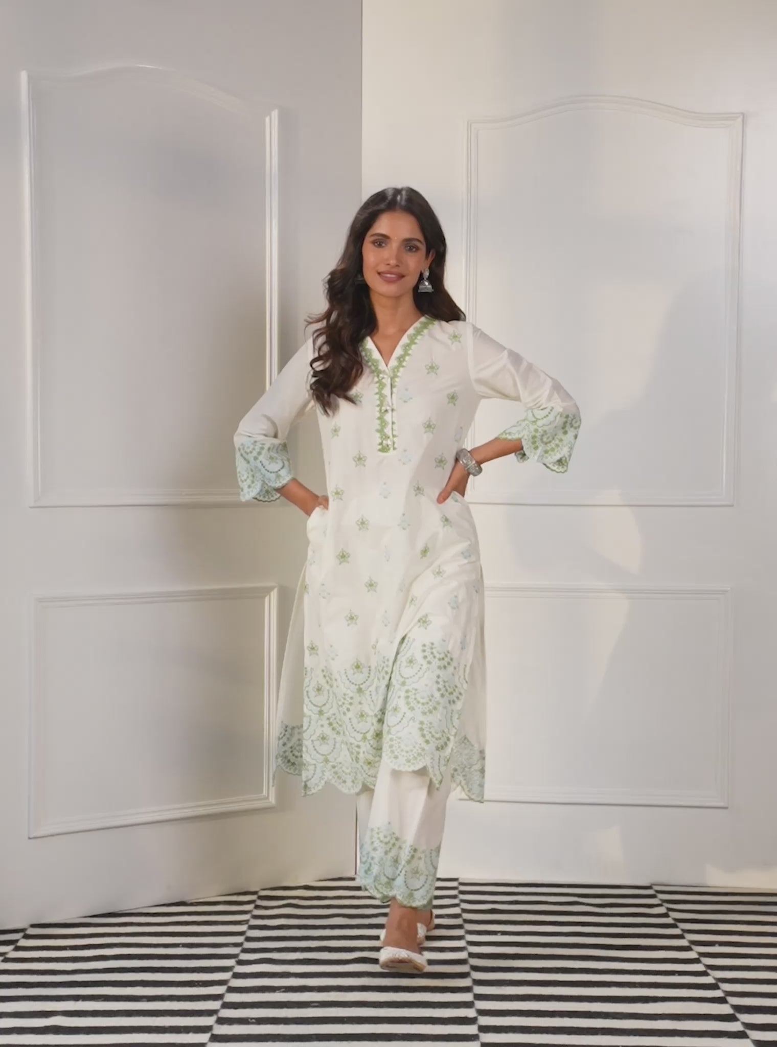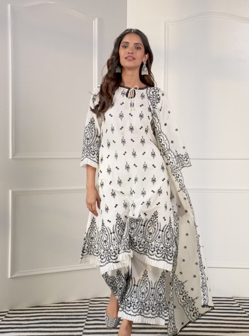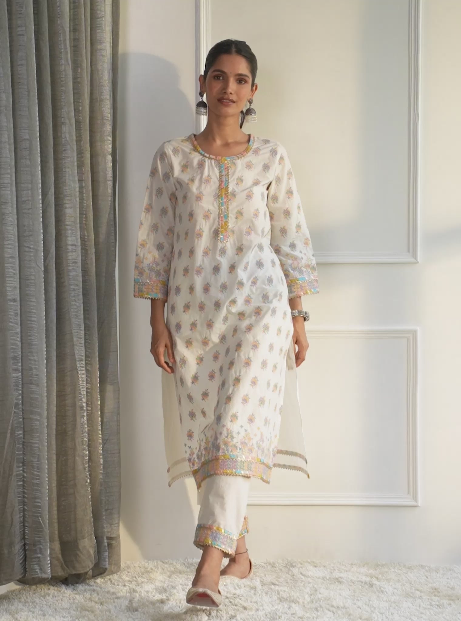 Mulmul Cotton Asteria Off White Kurta With Asteria Off White Palazzo