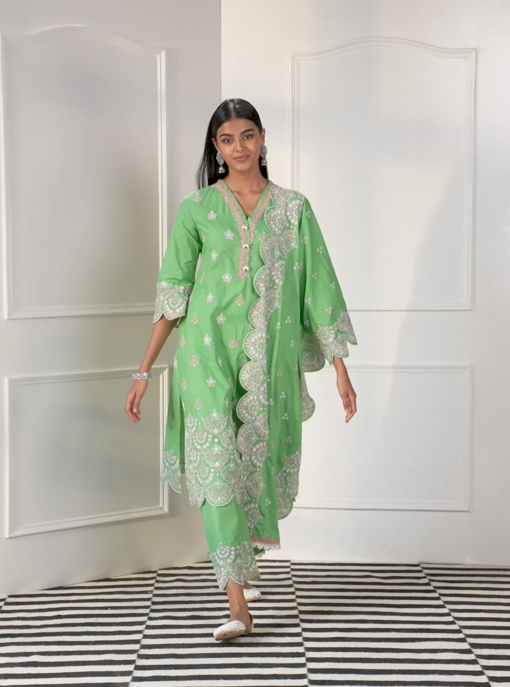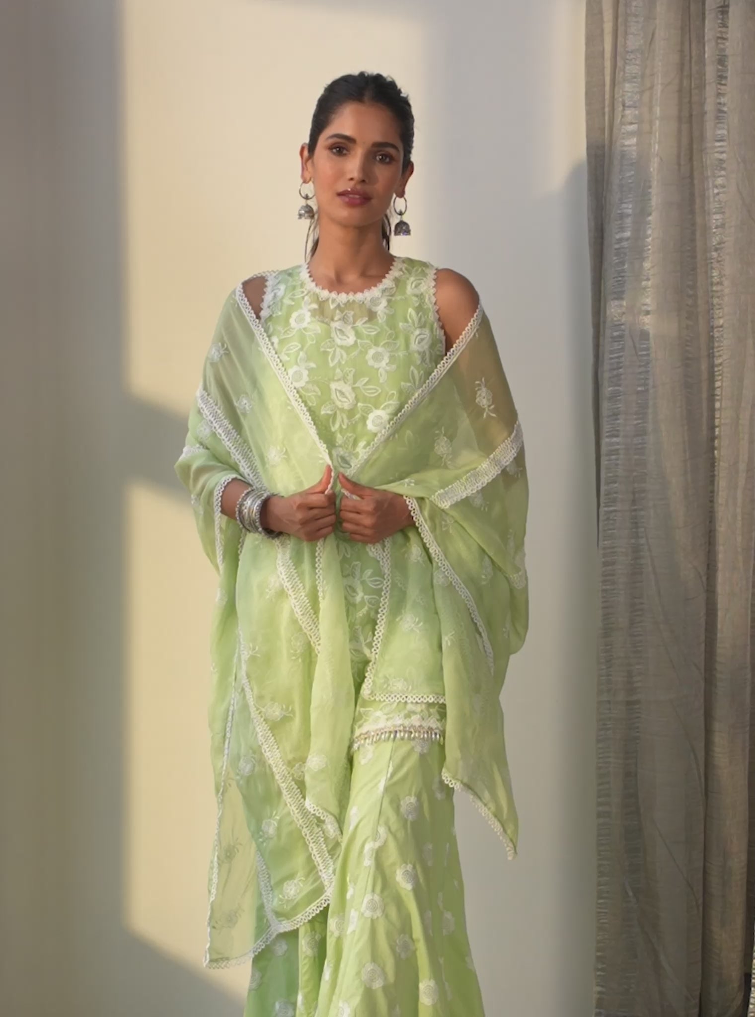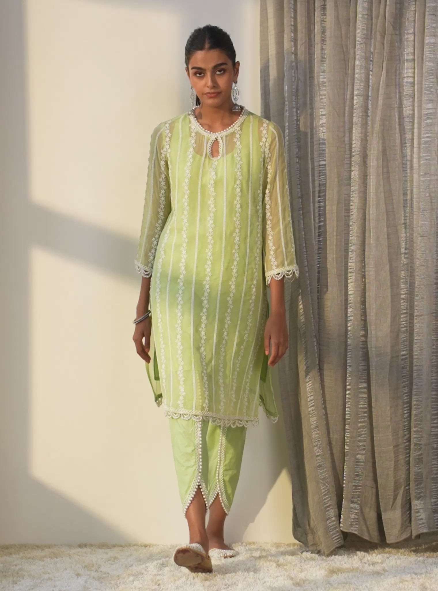 Mulmul Organza Twyla Green Kurta With Mulmul Cotton Twyla Green Pant