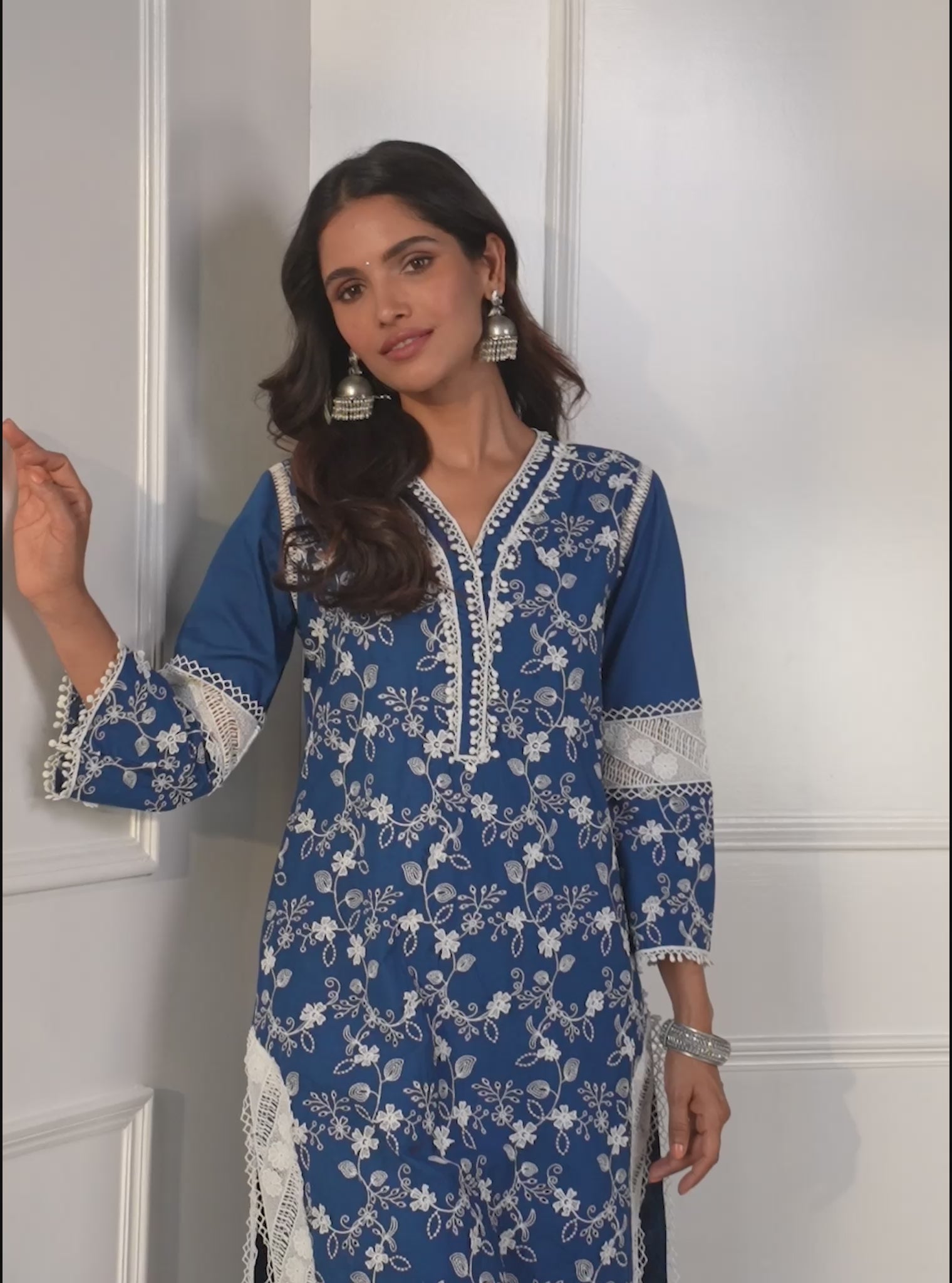 Mulmul Cotton Alice Navy Kurta with Alice Navy Pant