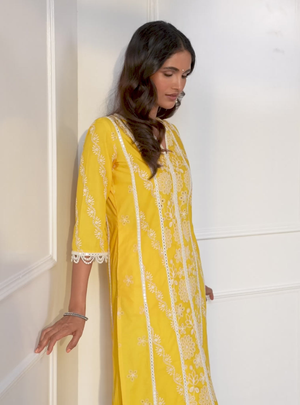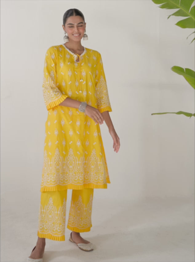Mulmul Cotton Asteria Mango Kurta With Mulmul Cotton Asteria Mango Palazzo