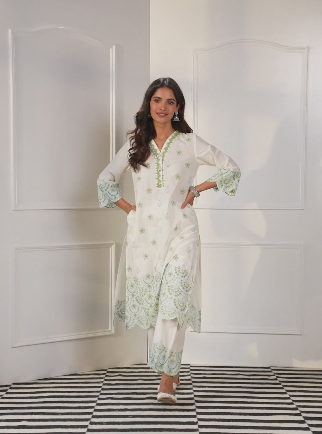 Mulmul Cotton Aviana White Kurta With Aviana White Pant
