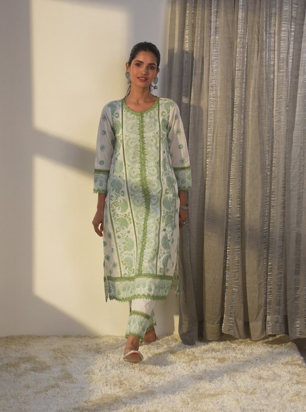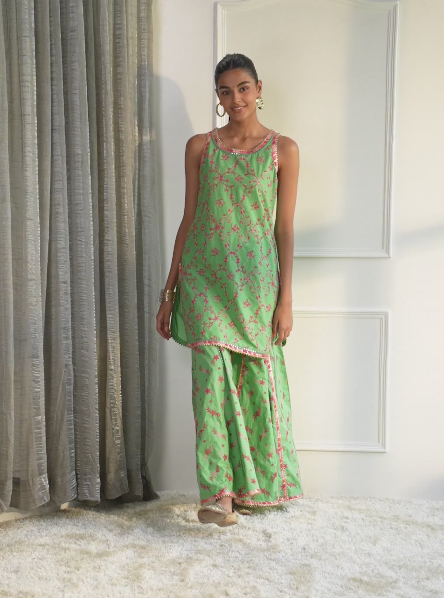 Mulmul Cotton Gabriella Green Kurta With Gabriella Green Garara