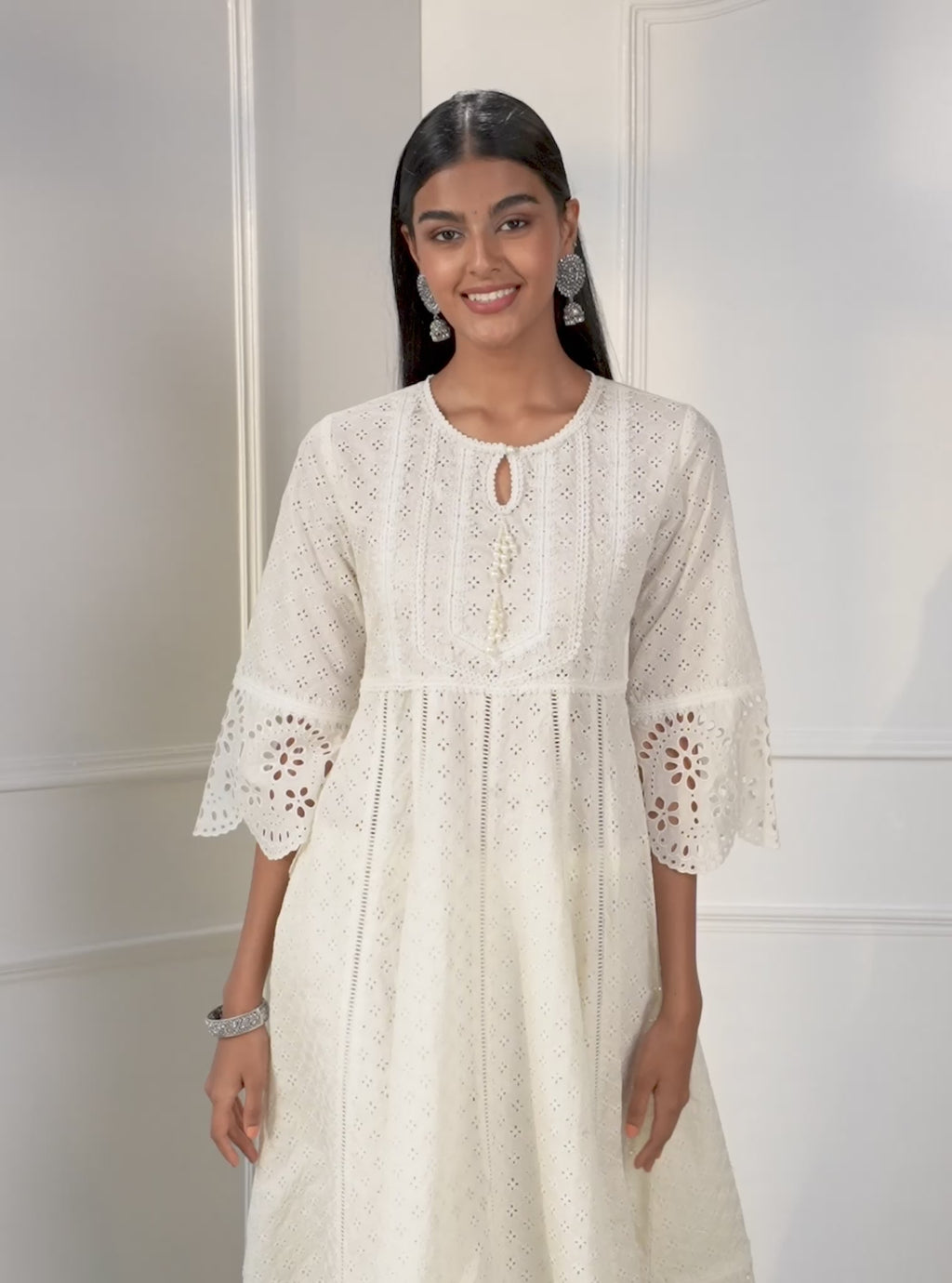 Mulmul Cotton Ayla Anarkali Off White Kurta With Ayla Off White Pant