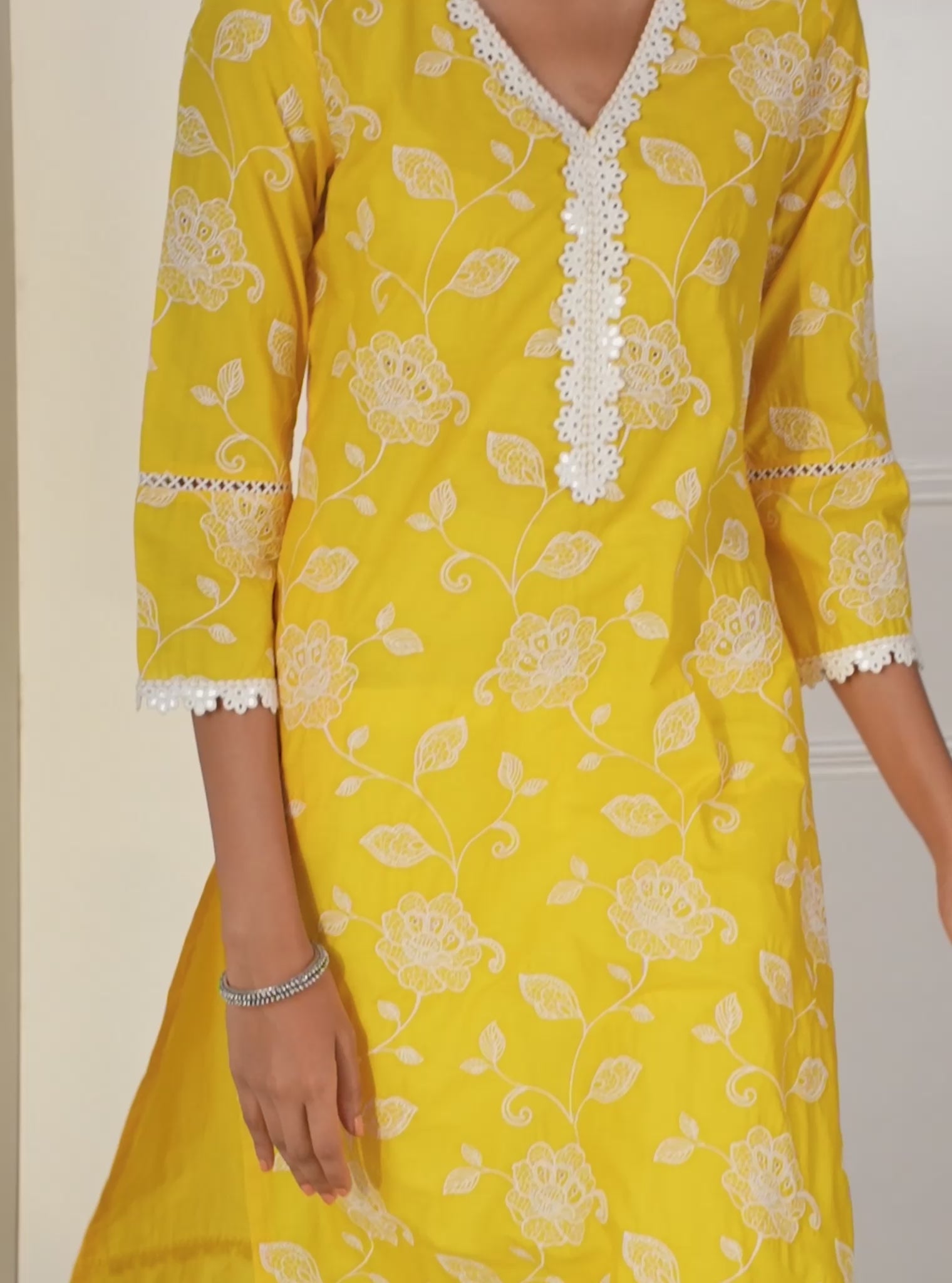 Mulmul Cotton Purna Yellow Kurta With Purna Yellow Palazzo