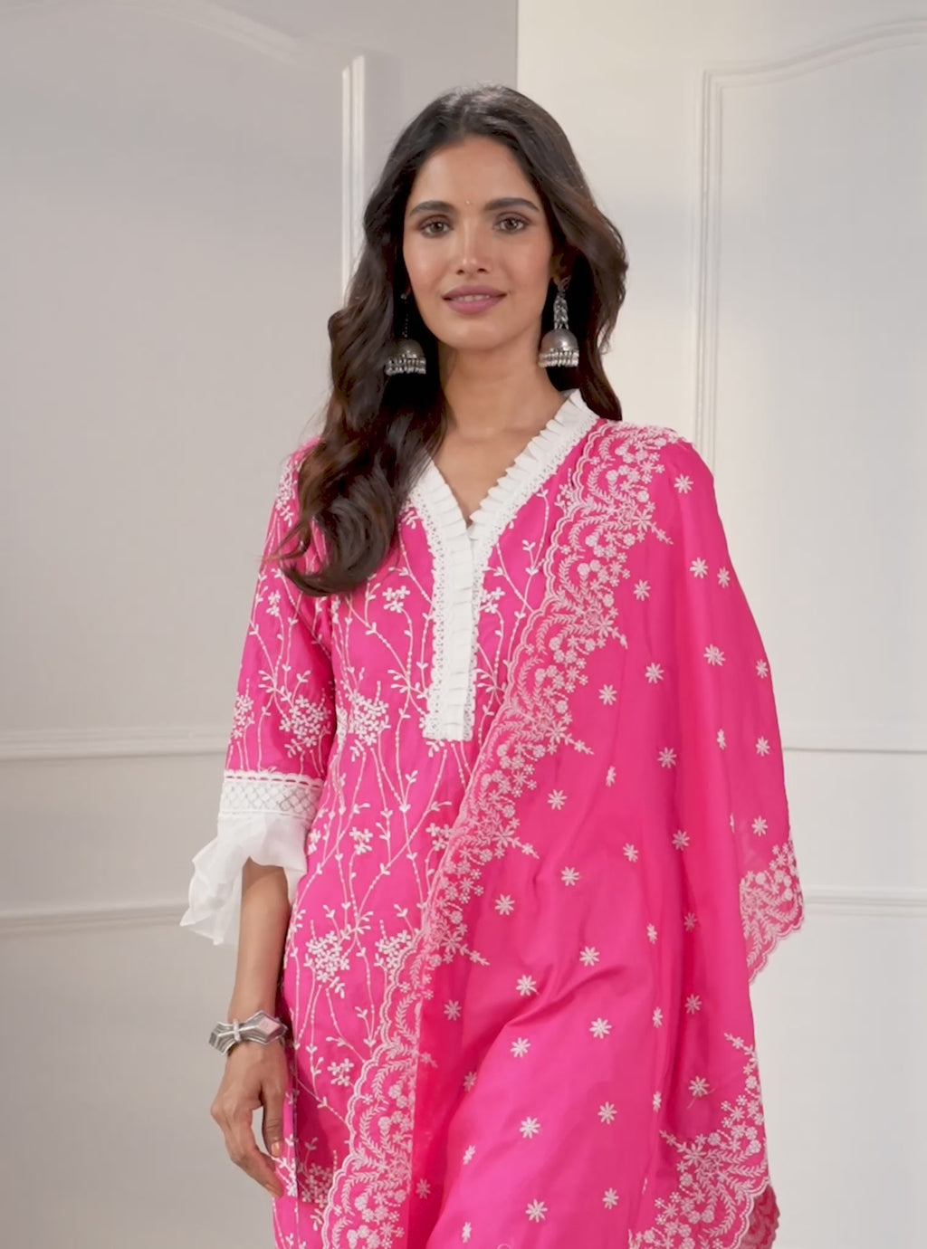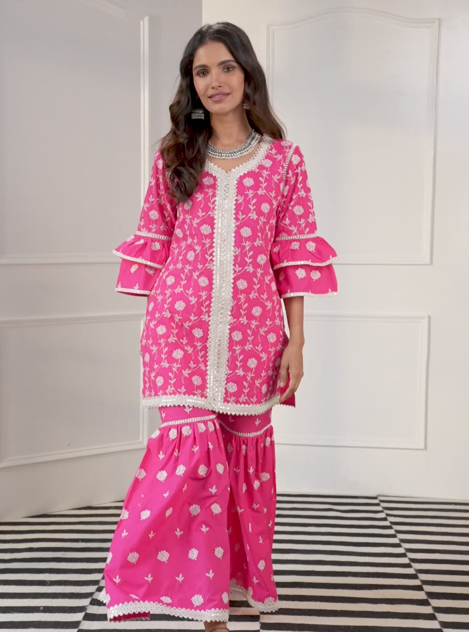 Mulmul Cotton Keziah Pink Kurta With Keziah Pink Garara