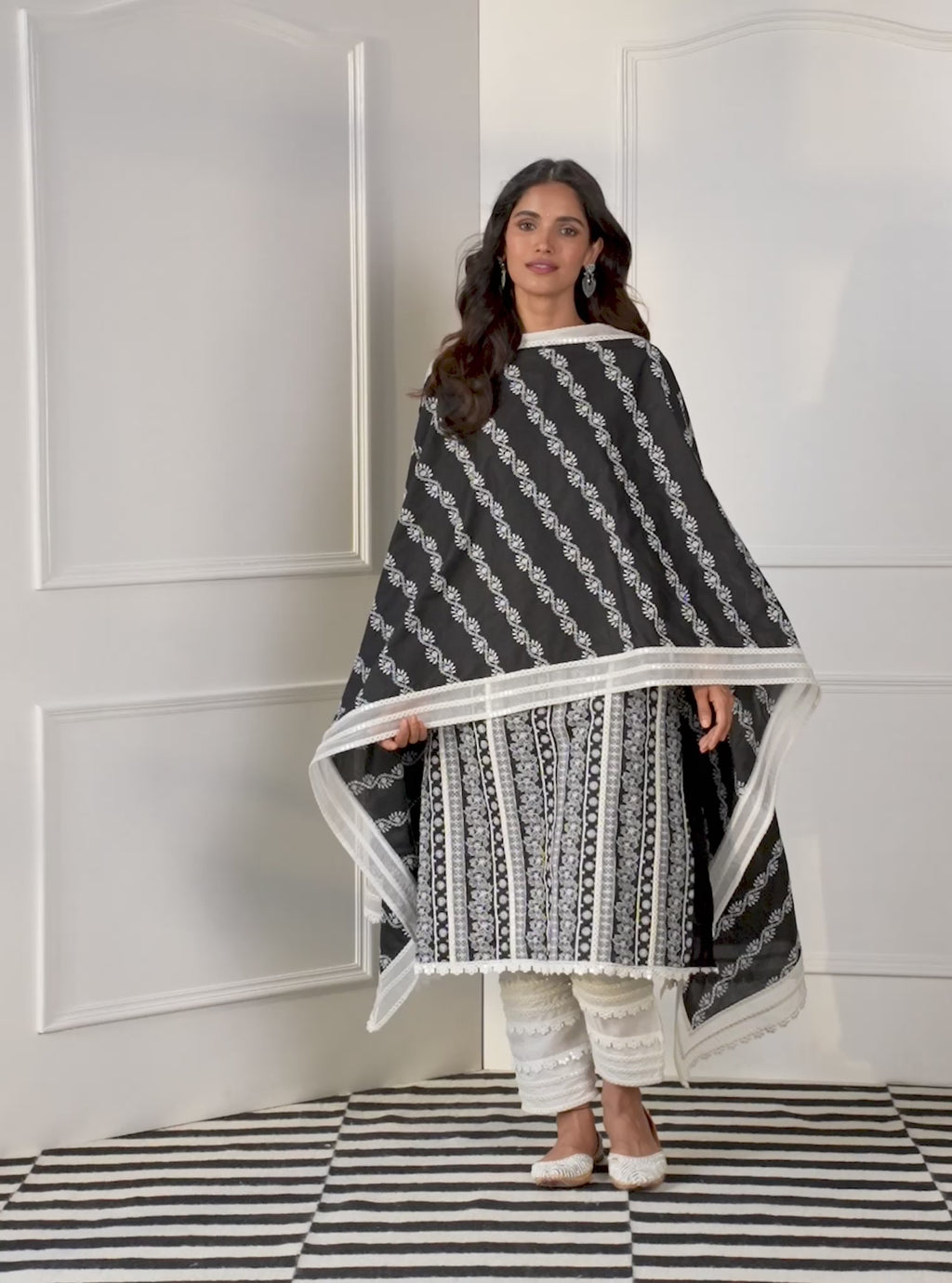 Mulmul Cotton Leh Black Kurta With Leh Black Palazzo