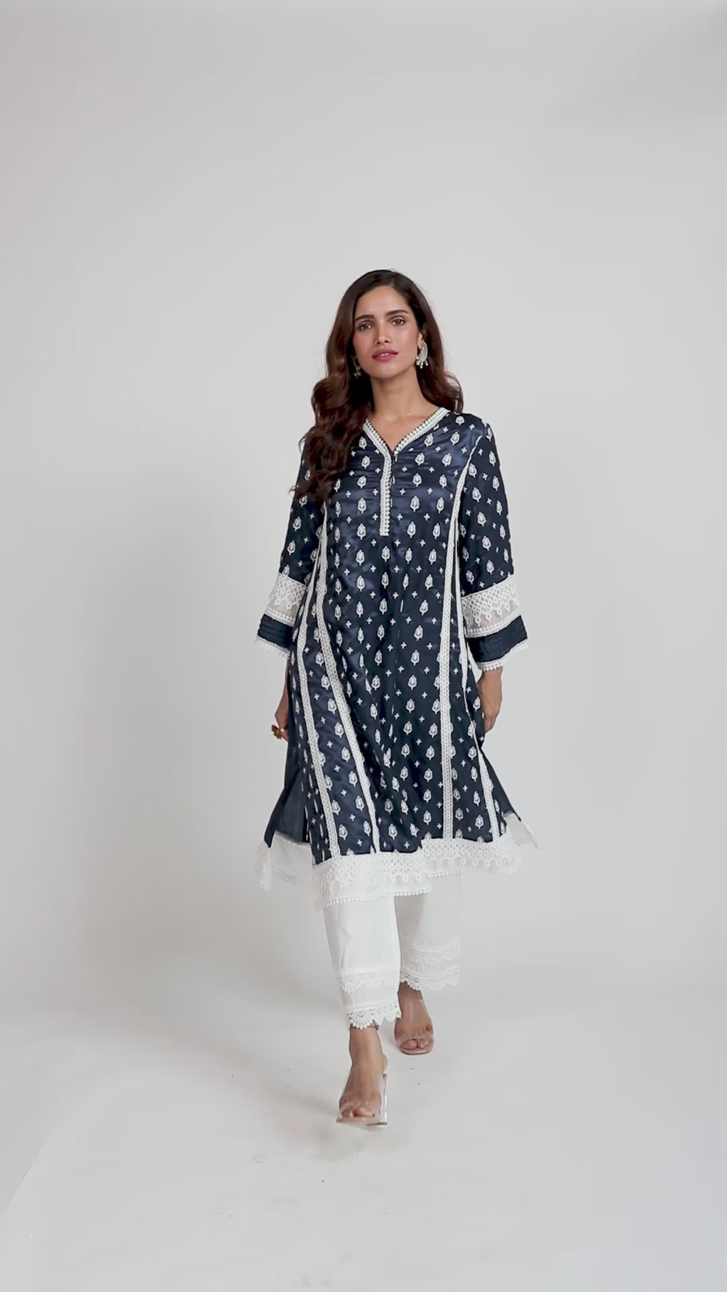 Mulmul Supima Cotton Moon Light Navy Kurta