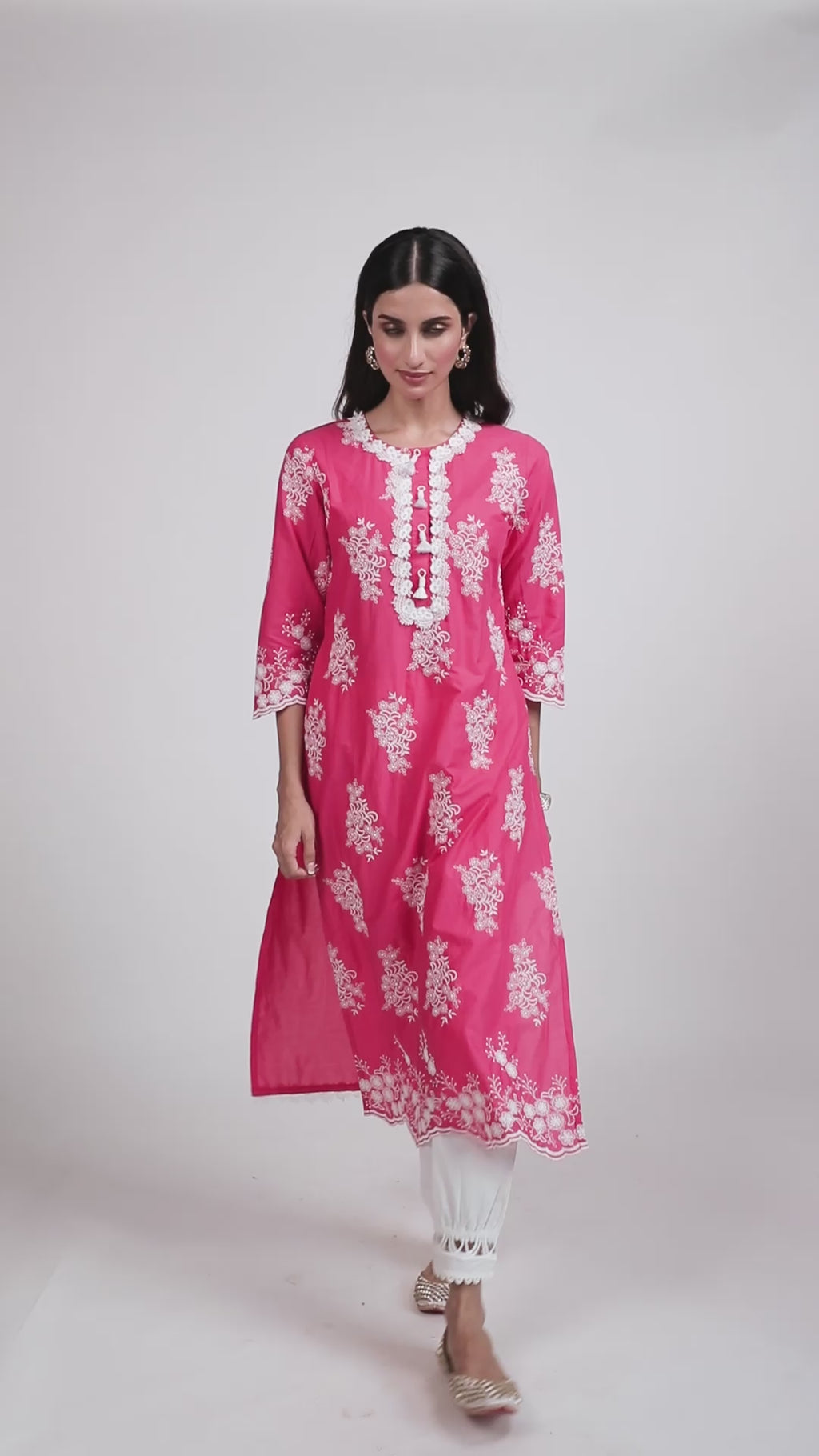 Falaknuma Supima Cotton Fuschia Kurta With Aelira White Dhoti Pant