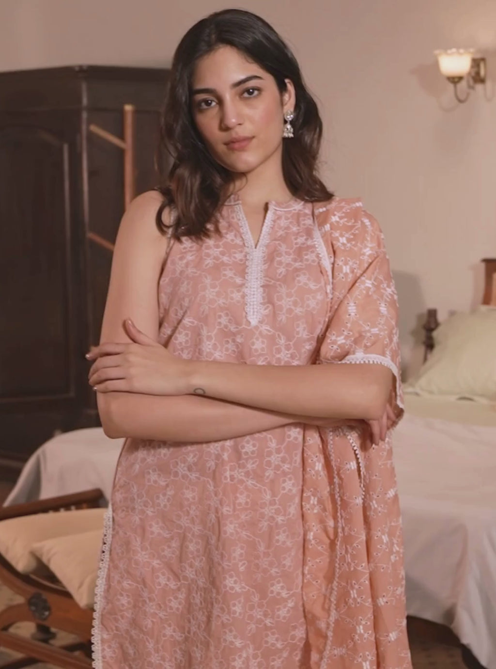 Ghita Supima Cotton White Kurta with Dhoti Pant Set