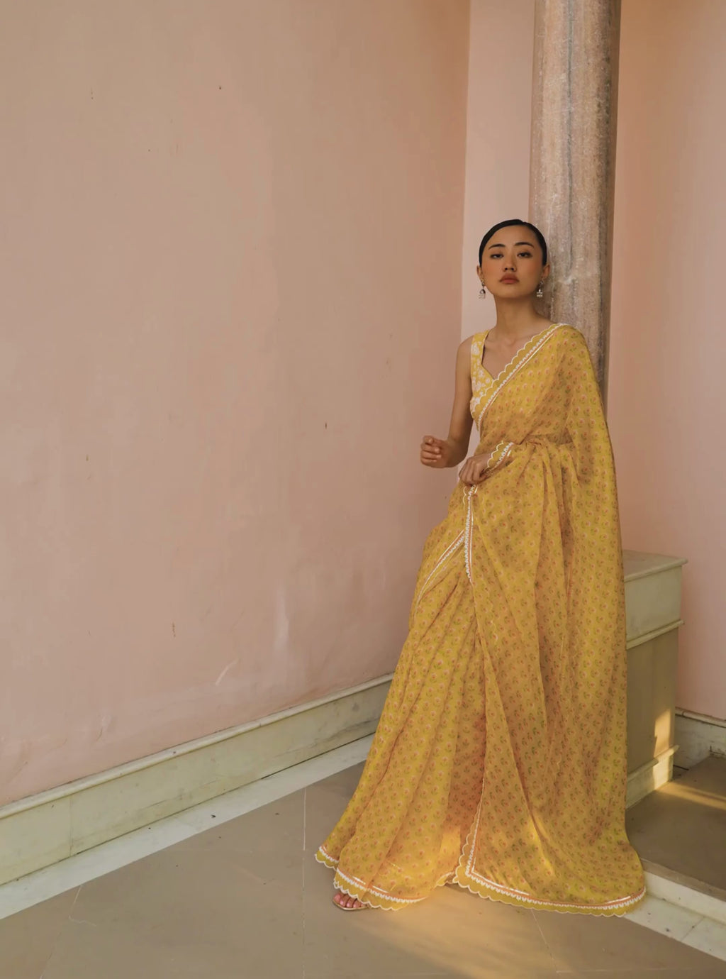 Leya Organza Printed Mustard Saree