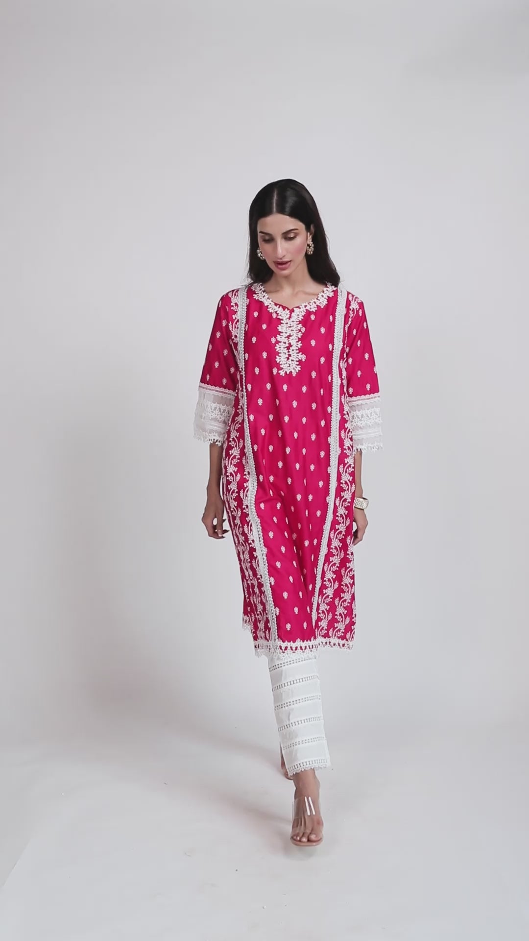Mulmul Pima Satin Merry Kurta Fuchsia