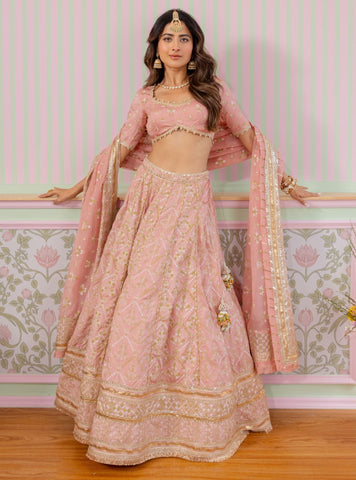 Perfect for wedding rituals, sangeet nights, or a bride’s statement moment, this ensemble is made for twirling, dazzling, and unforgettable entrances.