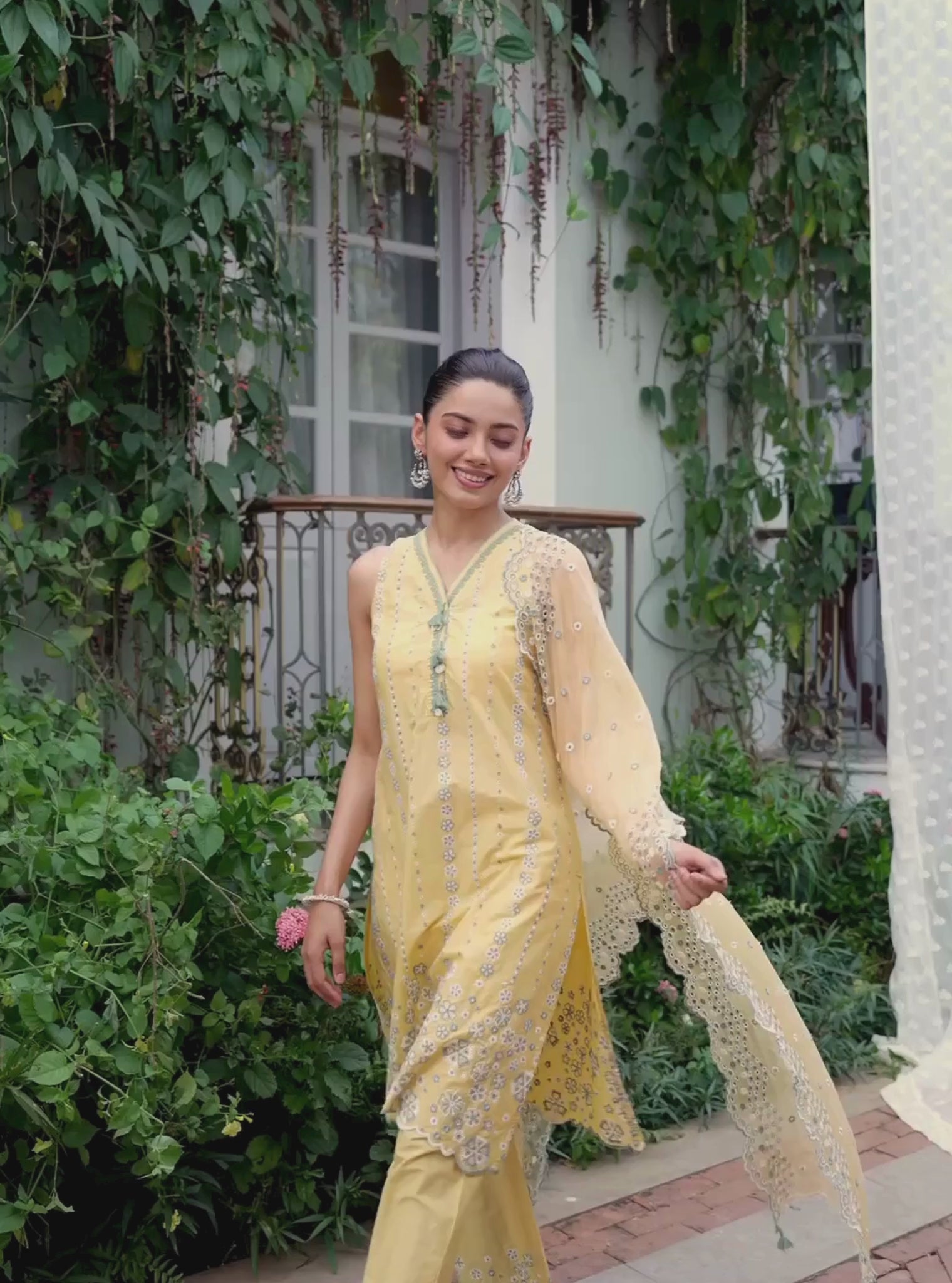 Bright and cheerful, the Elra kurta set is crafted in breathable Supima cotton that feels soft and comfortable through the day. The straight kurta features delicate motifs and subtle detailing that enhance the silhouette with understated charm. It is paired with comfortable cotton pants that balance the look with ease. The ensemble is completed with a lightweight chiffon dupatta that adds a soft, flowing finish. A vibrant set perfect for daytime gatherings and festive celebrations.