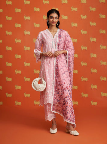 Khaji Supima Cotton Pink Kurta Set