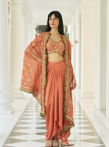 Viscose Glass Organza Luxe Parinay Shrug & Cupro Skirt Set