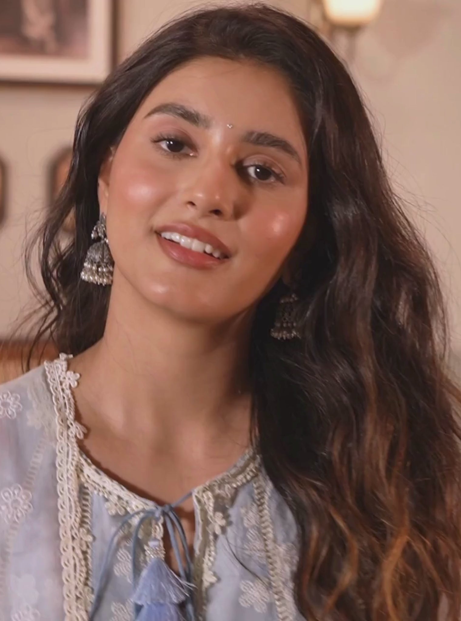 Step Into A World Of Ethereal Charm With This Enchanting Organza Anarkali Set, Bathed In A Soft, Delicate Blue Hue That Reflects The Summer Skies. The Subtle Ombre Effect Cascades Like A Gentle Breeze, Invoking A Sense Of Effortless Grace. The Round Neckline Of The Kurta Features A Tie-Up Detail. Delicate Floral Embroidery, In White Thread, Adorns The Entire Kurta. Lace Trimmings Grace The Neckline, Sleeves, And Hemline, Adding A Touch Of Feminity.