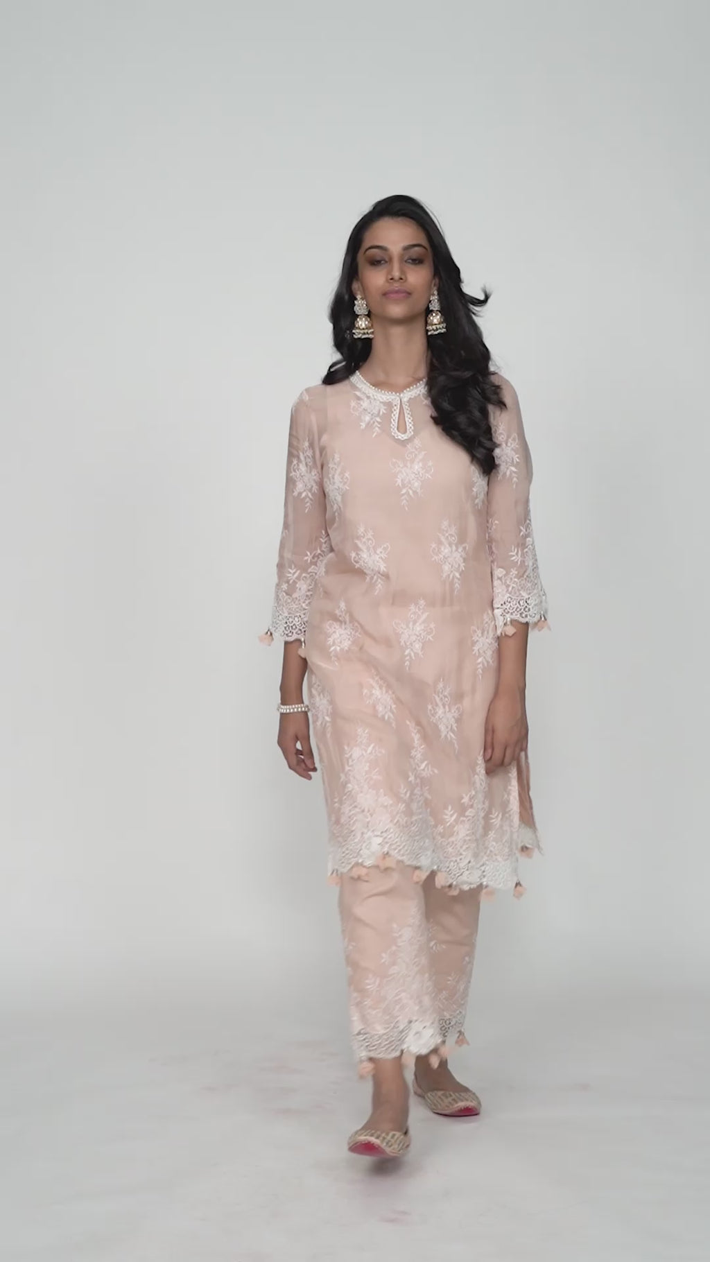 Straight Fit Pyjama With Fine Floral Jaali Lacework And Handmade Net Tassels