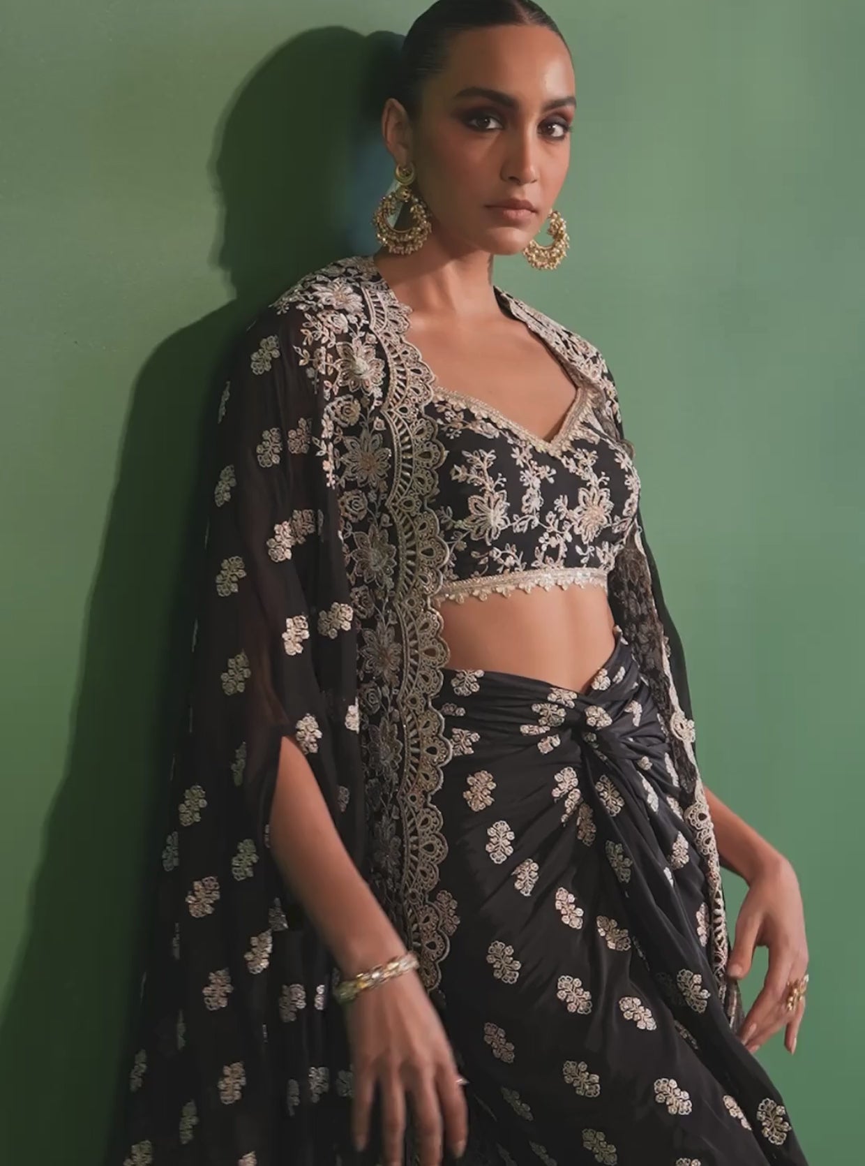 Maya Organza Black Cape Shrug With Skirt