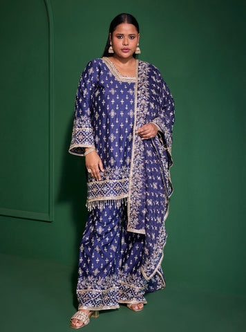 Timeless and elegant, this vibrant kurta set is an embodiment of classic beauty with a touch of grandeur. The straight-cut kurta is adorned with intricate golden motifs, complemented by delicate embroidery along the neckline and borders. The matching straight-fit pants mirror the kurta’s embroidered accents, creating a cohesive and polished look.