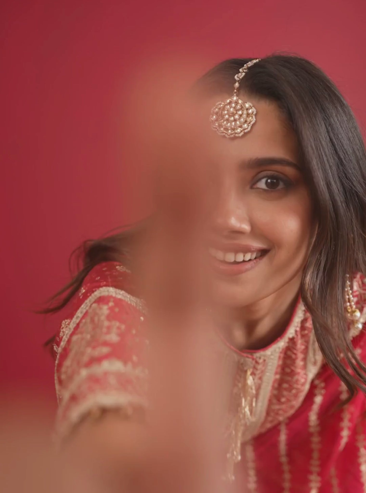 A celebration-ready red kurta set in soft pima satin with printed detailing. Styled with pants and a matching organza dupatta, this look blends ease, tradition, and timeless colour.