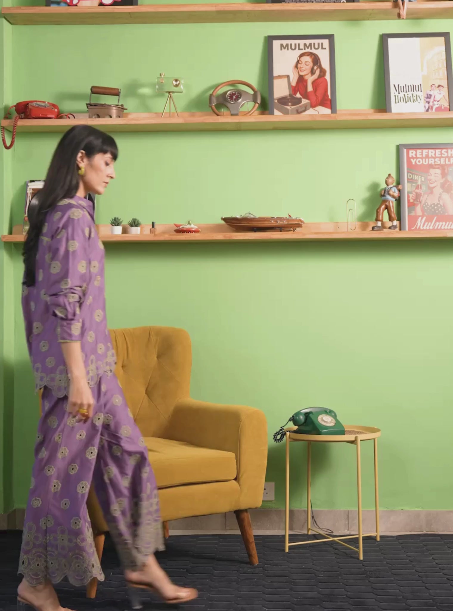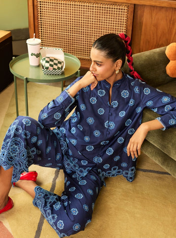 A coordinated shirt-and-pant set in fluid pima satin with a soft sheen. The Zivi silhouette is relaxed yet structured, designed for comfort during long celebrations while looking refined.