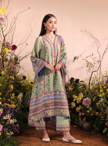 The set is completed with matching straight pants and a coordinating printed dupatta, making it a breezy and graceful choice for daytime occasions, garden gatherings, or casual festive affairs.